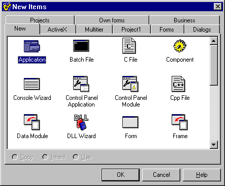 | Шаг 4 - Создание дочерней формы [TForm] Во многих приложениях существует многооконный интерфейс. Все формы, визуально разрабатываемые в среде, являются потомками класса TForm. Команда для создания новой формы - File->New Form. В приложении существует главная форма, автоматически создаваемая при запуске и закрывающая приложение при своем закрытии, и дочерние формы, которые могут статически существовать в приложении или динамически создаваться во время работы программы. Эти установки задаются по команде Project->Options на вкладке Forms. В качестве примера я рассмотрю проект, выдающий по щелчку на кнопке дочернее окно с двумя полями ввода и добавляющий данные в объект TListBox. Формы надо спроектировать так: Для кнопок Ok и Cancel значение ModalResult нужно установить в mrOk и mrCancel соответственно. Вот код: Code #include "unit2.h" void __fastcall TForm1::EnterClick(TObject *Sender) { Form2=new TForm2(this); if (Form2->ShowModal()==mrCancel) return; ListBox1->Items->Add(Form2->Edit1->Text+" - "+Form2->Edit2->Text); } //----------------------------------------------------------